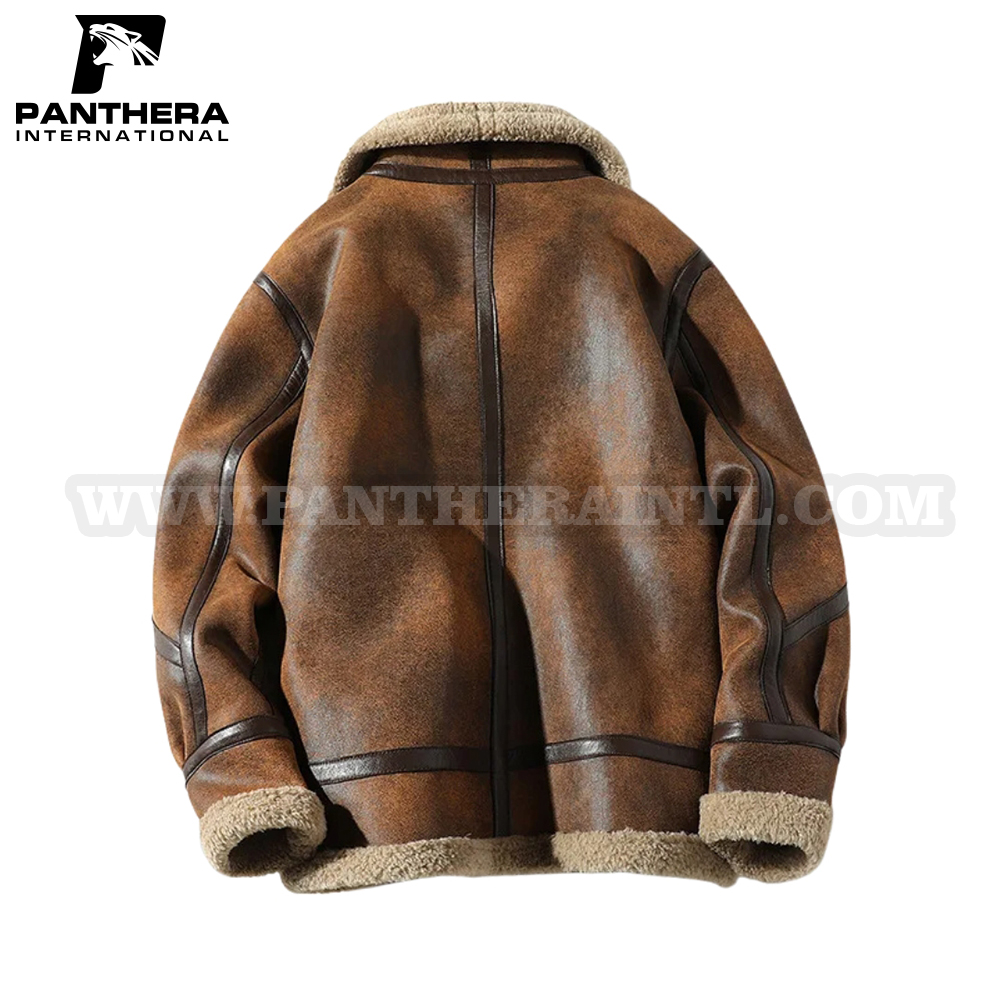 Bomber Winter Faux Brown Leather Jacket